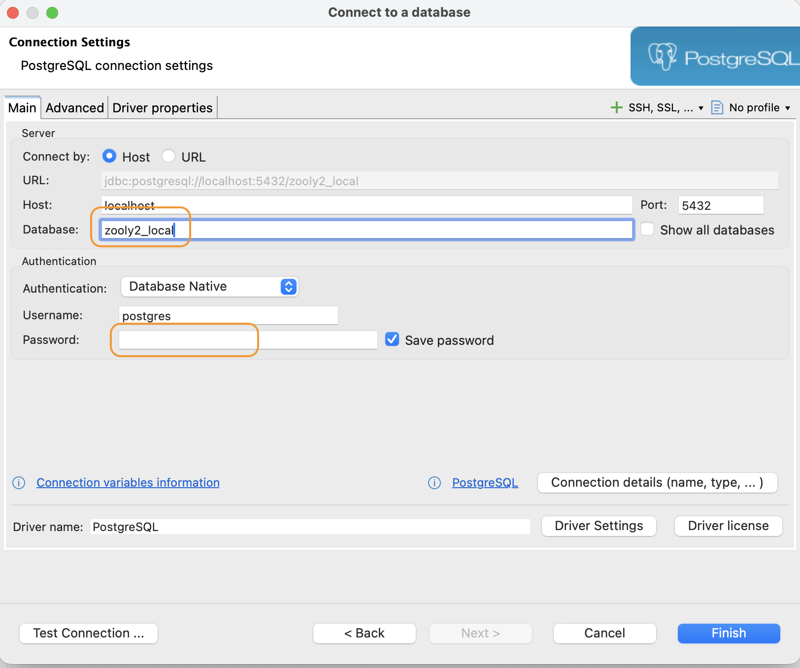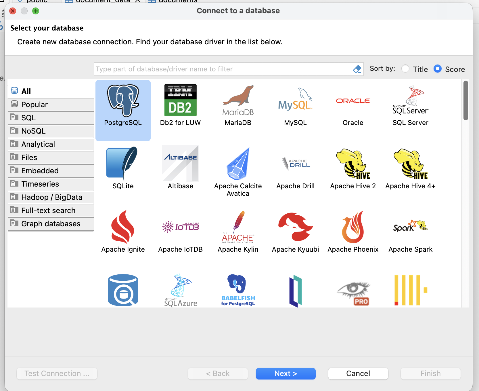 Select the PostgreSQL driver.